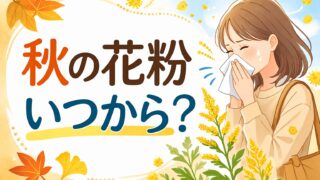 花粉症 花粉症 秋 いつまで?症状が続く時期の目安を解説 花粉症は秋にいつまで続くのかをわかりやすく解説します。8月〜10月の目安や長引く原因、風邪との違い、症状を少しでも楽にする対策、受診を考える目安まで整理しました。 2026.03.11 花粉症