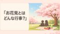 → お花見とは 簡単に?・意味とやることを一文で説明もう少し背景(意味・由来)まで知りたい人はこちらが早いです。